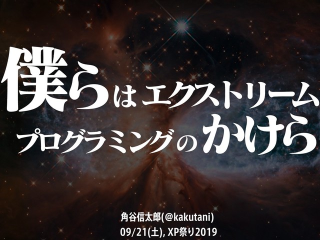 9/21(土) XP祭り2019 基調講演 http://xpjug.com/xp2019/