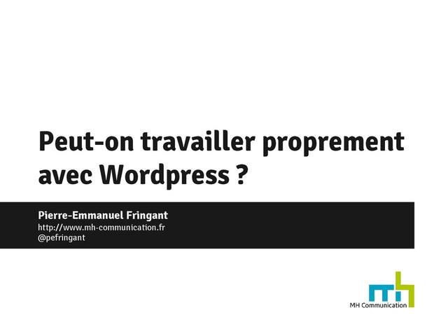 Wordpress est un outil formidable très utilisé dans le monde. Cette popularité doit certainement beaucoup à la simplicité de son installation. Mais peut-on l’intégrer dans un flux de production moderne ? Versioning, déploiement automatisé, machine virtuelle, tests… Ce 27ème CaenCamp sera l’occasion de partager les expériences et de débattre sur la pertinence de choisir Wordpress comme outil de travail.