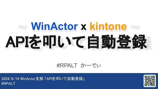 2024/6/19 WinActor支部 「APIを叩いて自動登録」 #RPALT ~ WinActor x kintone ~ APIを叩いて自動登録