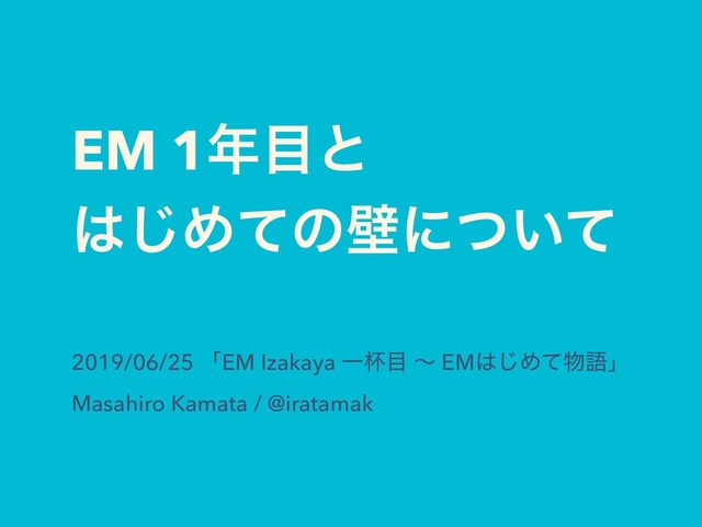 EM 1ͱ ͡Ίͯͷนʹ͍ͭͯ 2019/06/25 ʮEM Izakaya Ұഋ ʙ EM͡Ίͯޠʯ Masahiro