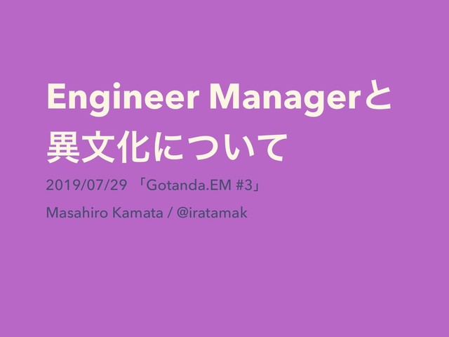 Engineer Managerͱ ҟจԽʹ͍ͭͯ 2019/07/29 ʮGotanda.EM #3ʯ Masahiro Kamata / @iratamak