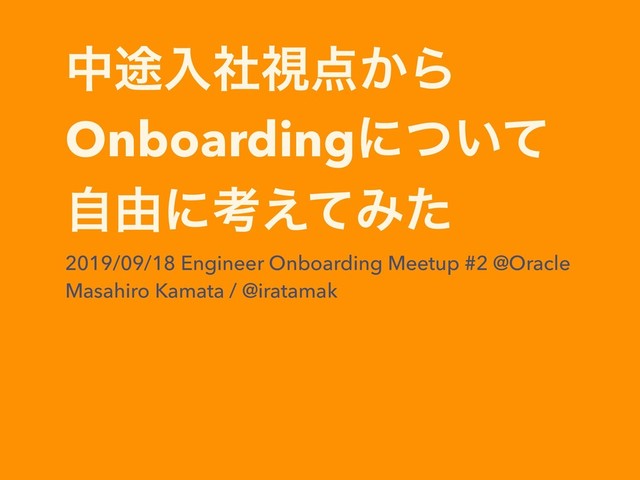 த్ೖࣾࢹ͔Β Onboardingʹ͍ͭͯ ࣗ༝ʹߟ͑ͯΈͨ 2019/09/18 Engineer Onboarding Meetup #2 @Oracle Masahiro