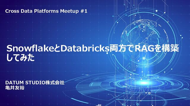 SnowflakeとDatabricks両方でRAGを構築 してみた DATUM STUDIO株式会社 亀井友裕 Cross Data Platforms Meetup #1