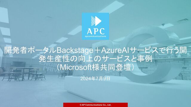 株式会社エーピーコミュニケーションズは、日本マイクロソフト株式会社様が推進する「DevOps x 生成AIを組み合わせた開発生産性の変革領域」を中心にサービスメニューの立て付けなどで協業しております。具体的には、開発者ポータル「Backstage」と「AzureAIサービス群」を組み合わせた、独自の開発者ポータルを顧客環境へ導入することで、PlatformEngineering推進を支援しております。この度、それらの独自開発Pluginや独自提供ゴールデンパスなどのノウハウをサービス化したプライベートマネージドサービスをリリースします。本セッションではこれらの概要とこれまでの実際の事例についてご紹介します。なお、本サービスはAzureサービスを利用されていない、プライベート/パブリッククラウドのユーザの方でも活用頂けます。