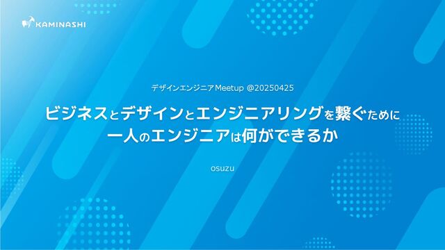 ビジネスとデザインとエンジニアリングを繋ぐために 一人のエンジニアは何ができるか