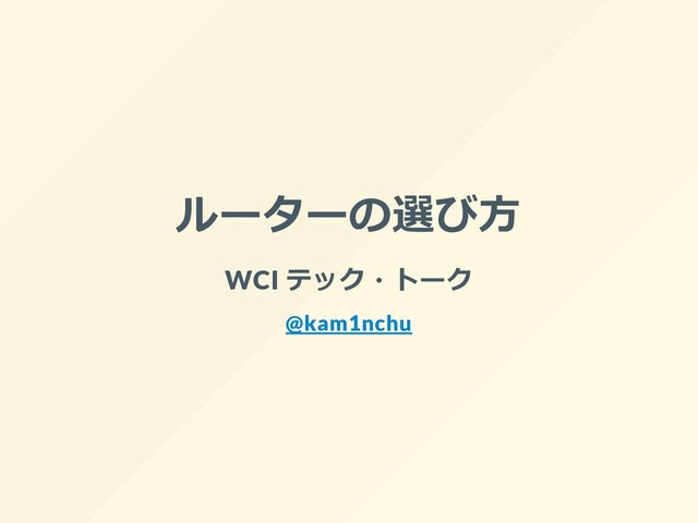 ルーターの選び⽅ WCI テック・トーク @kam1nchu