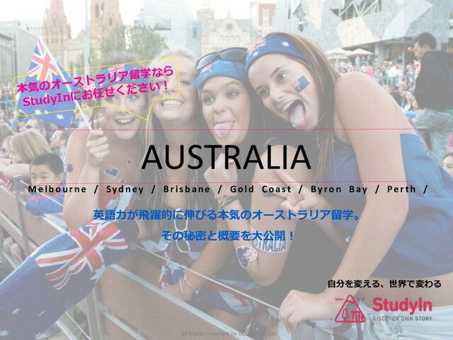 V6B 2X1 トロント/モントリオールスタッフ 所在地 20 Eglinton Ave East,Suite 392 Toronto, ON, Canada M4P 1A9 オーストラリア シドニー スタッフ 所在地 Suite 40, Level 3, 650 George St Sydney NSW Australia 2000 メルボルン スタッフ 所在地 Suite1-2,Level 5, 258 LiOle Bourke Street,Melbourne 3000 ゴールドコースト ブリスベン スタッフ 所在地 Suit 2610 Level 6 Southport Central Commercial Tower 2 5 Lawson Street, Southport QLD 4215 パース スタッフ 所在地 Suite 2, Level 6 Carillon City Office Tower, 207 Murray St, Perth WA 6000 現地提携オフィスのご紹介 24時間日本語サポートや現地でのオリエンテーションなど!