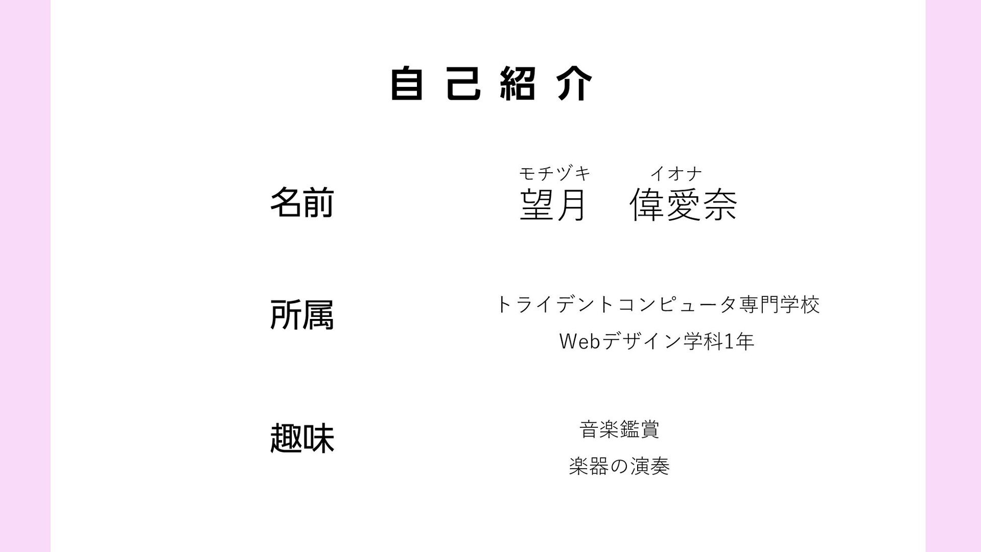 ࣗ ݾ հ トライデントコンピュータ専⾨学校 Webデザイン学科1年 望⽉ 偉愛奈 झຯ ⾳楽鑑賞