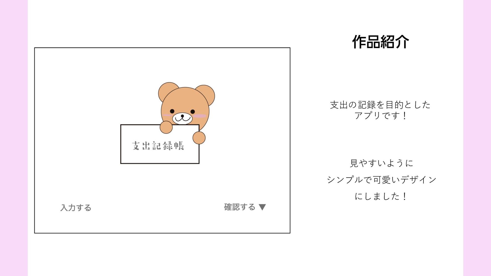 ࡞հ ⽀出の記録を⽬的とした アプリです! ⾒やすいように シンプルで可愛いデザイン にしました!