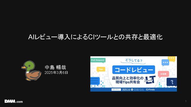 AIレビュー導入によるCIツールとの共存と最適化 中島 暢哉 2025年3月6日 1
