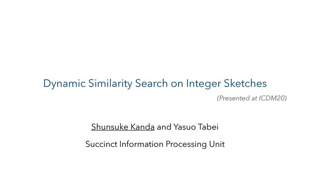 algorithms produce binary sketches ▹ Modern hashing algorithms produce integer sketches – Such as b-bit minhash [Li+, WWW10], 0-bit CWS [Li, KDD15], and GCWS [Li, KDD17] ▹ But, most search methods are designed for binary sketches e.g., 001101001001 e.g., 236301499231 • Dynamics ▹ Modern real-world datasets are dynamic (i.e., updated over time) – Such as Web pages and time series data ▹ But, most search methods are limited to static datasets or inefficient for dynamic datasets dataset x insert Our challenge Develop an efficient dynamic search method for both binary and integer sketches
