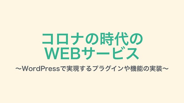 コロナの時代の WEBサービス 〜WordPressで実現するプラグインや機能の実装〜