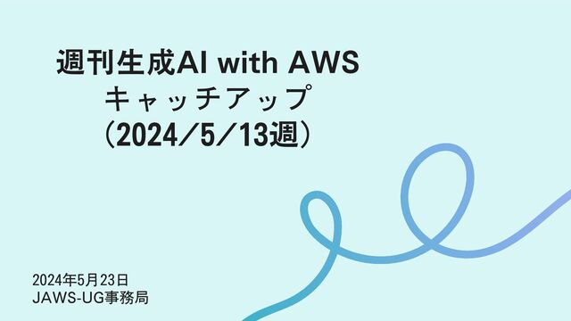 2024年5月23日 JAWS-UG事務局 週刊生成AI with AWS キャッチアップ (2024/5/13週)