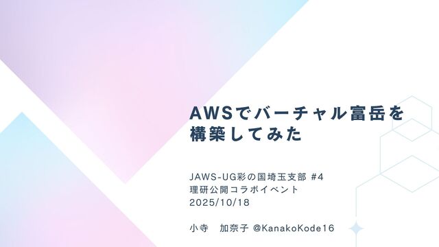 JAWS-UG彩の国埼玉支部 #4 理研公開コラボイベント 2025/10/18 小寺 加奈子 @KanakoKode16 AWSでバーチャル富岳を 構築してみた