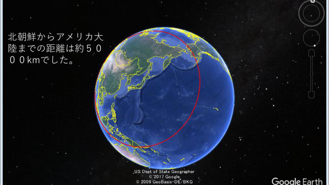 北朝鮮からアメリカ大 陸までの距離は約50 00kmでした。