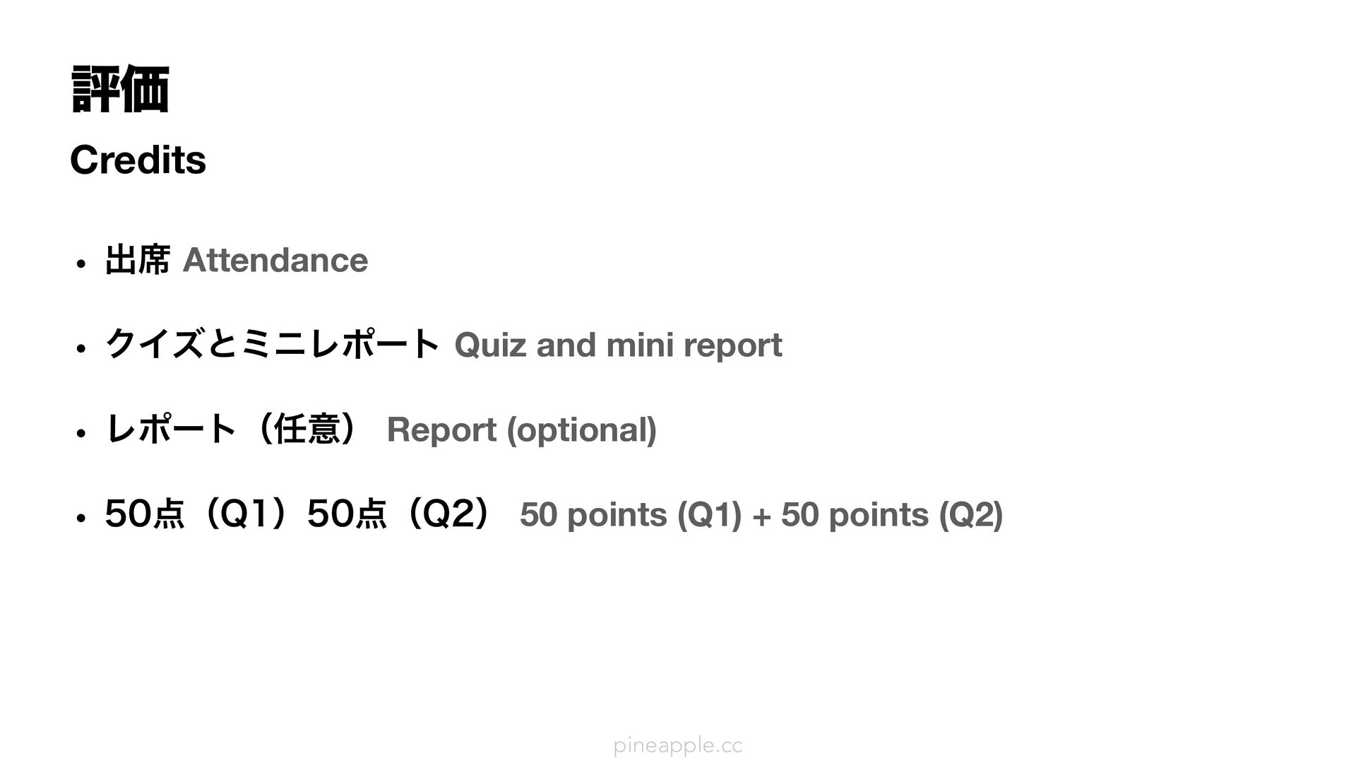 pineapple.cc ධՁ Credits w ग़੮Attendance w ΫΠζͱϛχϨϙʔτQuiz and mini report