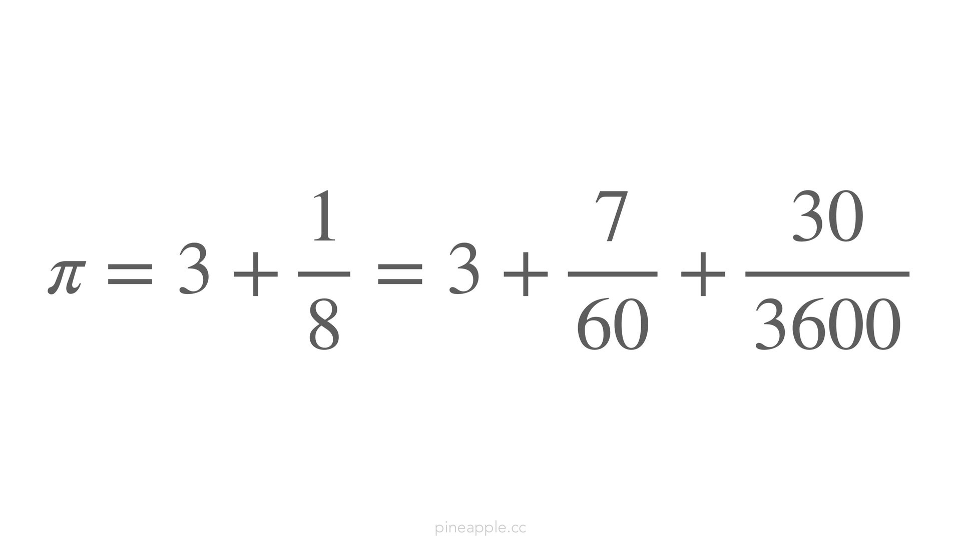 pineapple.cc π = 3 + 8 60 + 30 3600