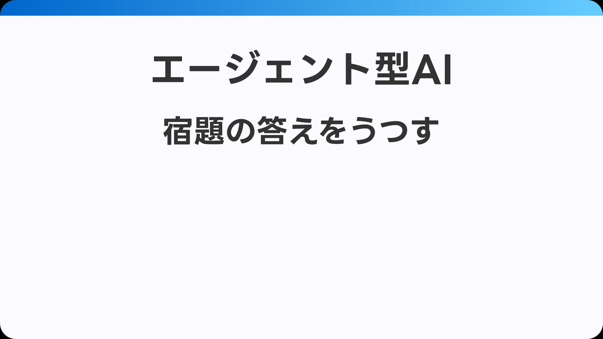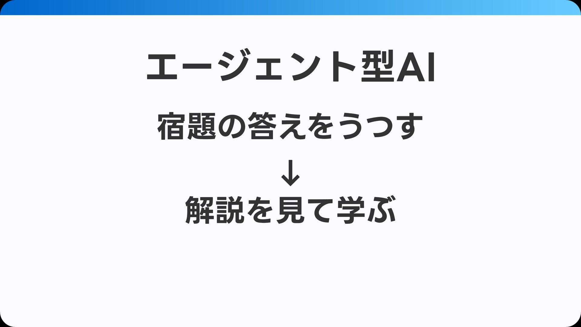 エージェント型AI 宿題の答えをうつす ↓ 解説を 見 て学ぶ