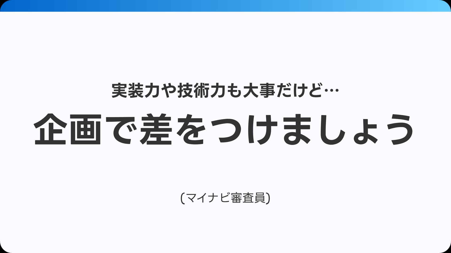 企画で差をつけましょう 実装 力 や技術 力 も 大 事だけど… (マイナビ審査員)