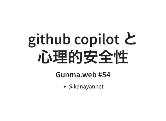 github copilot と 心理的安全性 Gunma.web #54 @kanayannet