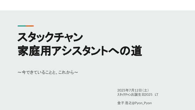 スタックチャン 家庭用アシスタントへの道 ~今できていることと、これから~ 2025年7月12日(土) スタックチャンお誕生日2025 LT 金子 浩之@Pyon_Pyon
