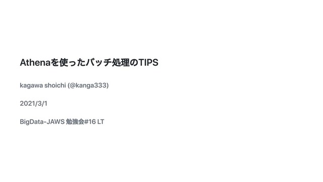 AND time >= timestamp '2021-02-01 00:00:00 Asia/Tokyo' AND time < timestamp '2021-02-04 00:00:00 Asia/Tokyo' Parquetファイルはフッターに各カラムの統計情報(Max/Min/Count)を持っており Athenaはそこを参照して効率よくスキャンをスキップできる 但しS3のGET APIのコストは余分にかかるので注意