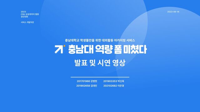 오직, 충남대학교 학생 전용 커스터마이징을 통한 사용자 맞춤화 사용자를 고려한 직관적 인터페이스 즐겨찾기 기능을 통한 효과적 관리와 참여 본 서비스는 오직 충남대학교 게 시판 데이터만을 활용했기 때문 에 충남대학교 학생들이 보다 손 쉽게 자신의 학교와 관련된 대외 활동 정보를 얻을 수 있습니다. 사용자는 메인 화면에서 자신의 관심 학과를 설정할 수 있으며, 해당 학과와 관련된 정보는 메인 페이지에 우선적으로 표시되도록 설계되었습니다. 토글 기능을 통한 학과별 구분 / 사진을 활용한 메인 구성 / 인터 렉션과 시각적 요소 등을 이용하 여 사용자를 고려한 직관적인 메 인페이지를 구현했습니다. 사용자는 관심 공모전이나 대외 활동을 즐겨찾기 하여 자신의 관 심사에 맞는 대외활동에 대한 효 과적인 관리와 참여가가 가능합 니다.