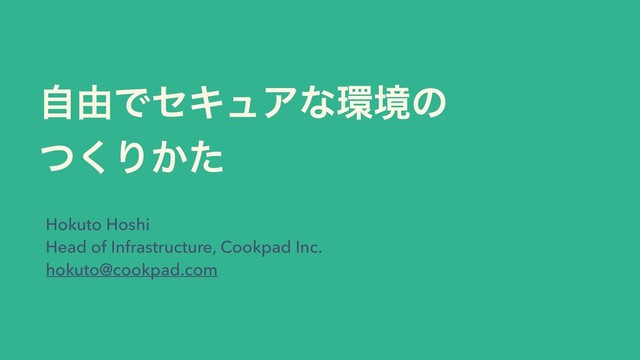 ࣗ༝ͰηΩϡΞͳڥͷ ͭ͘Γ͔ͨ Hokuto Hoshi Head of Infrastructure, Cookpad Inc.
