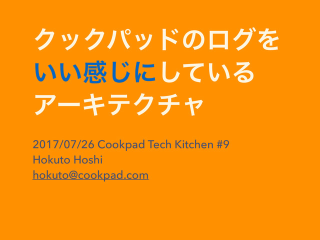 ΫοΫύουͷϩάΛ ͍͍ײ͡ʹ͍ͯ͠Δ ΞʔΩςΫνϟ 2017/07/26 Cookpad Tech Kitchen #9 Hokuto Hoshi