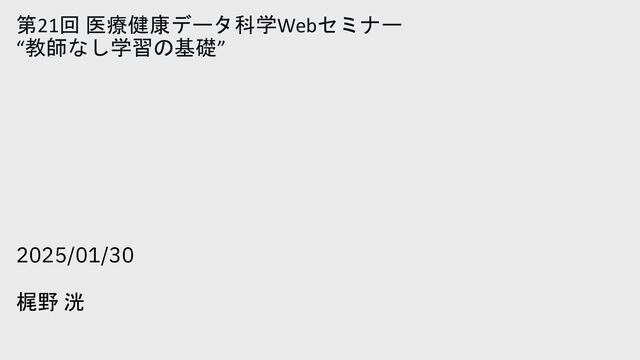 第21回 医療健康データ科学Webセミナー “教師なし学習の基礎” 2025/01/30 梶野 洸