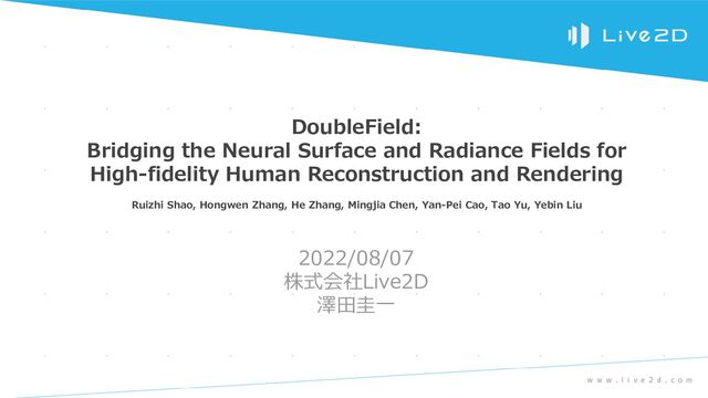 全日本コンピュータビジョン勉強会(2022/08/07)で発表した"DoubleField: Bridging the Neural Surface and Radiance Fields for High-Fidelity Human Reconstruction and Rendering"の紹介資料です。