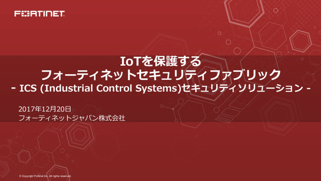 © Copyright Fortinet Inc. All rights reserved. 2017年12⽉20⽇ フォーティネットジャパン株式会社 IoTを保護する