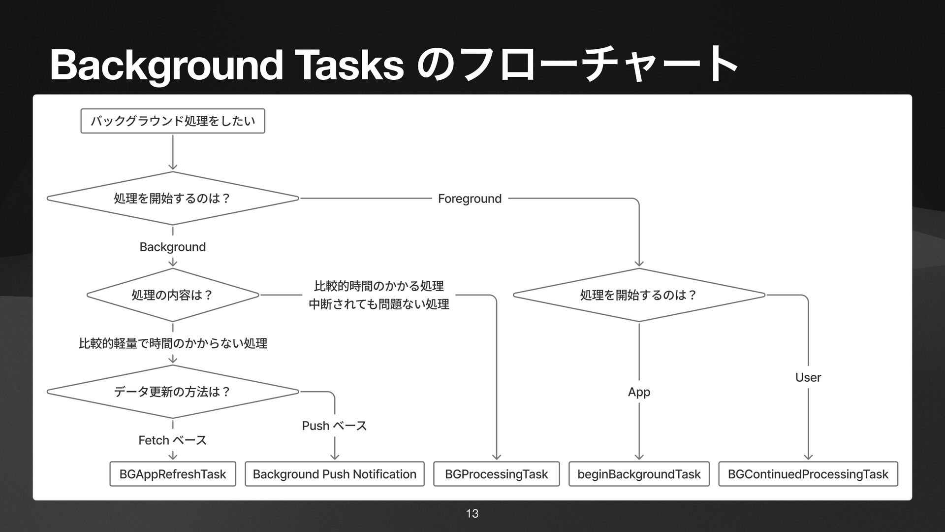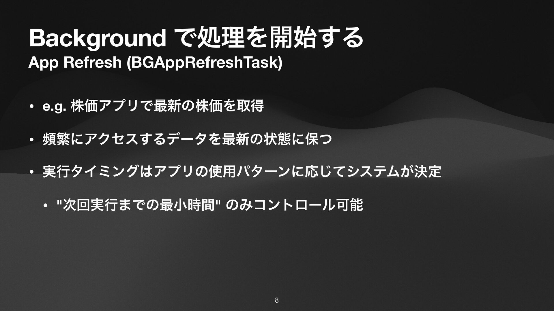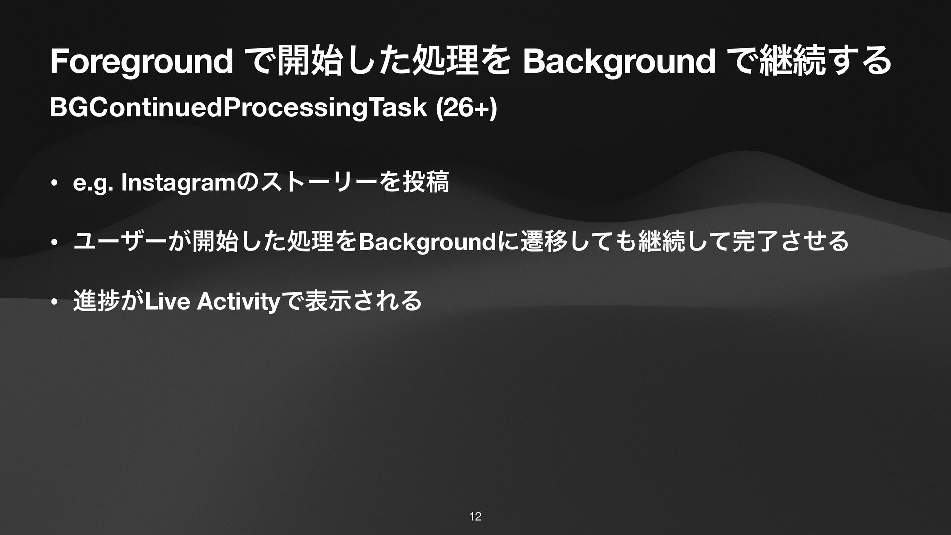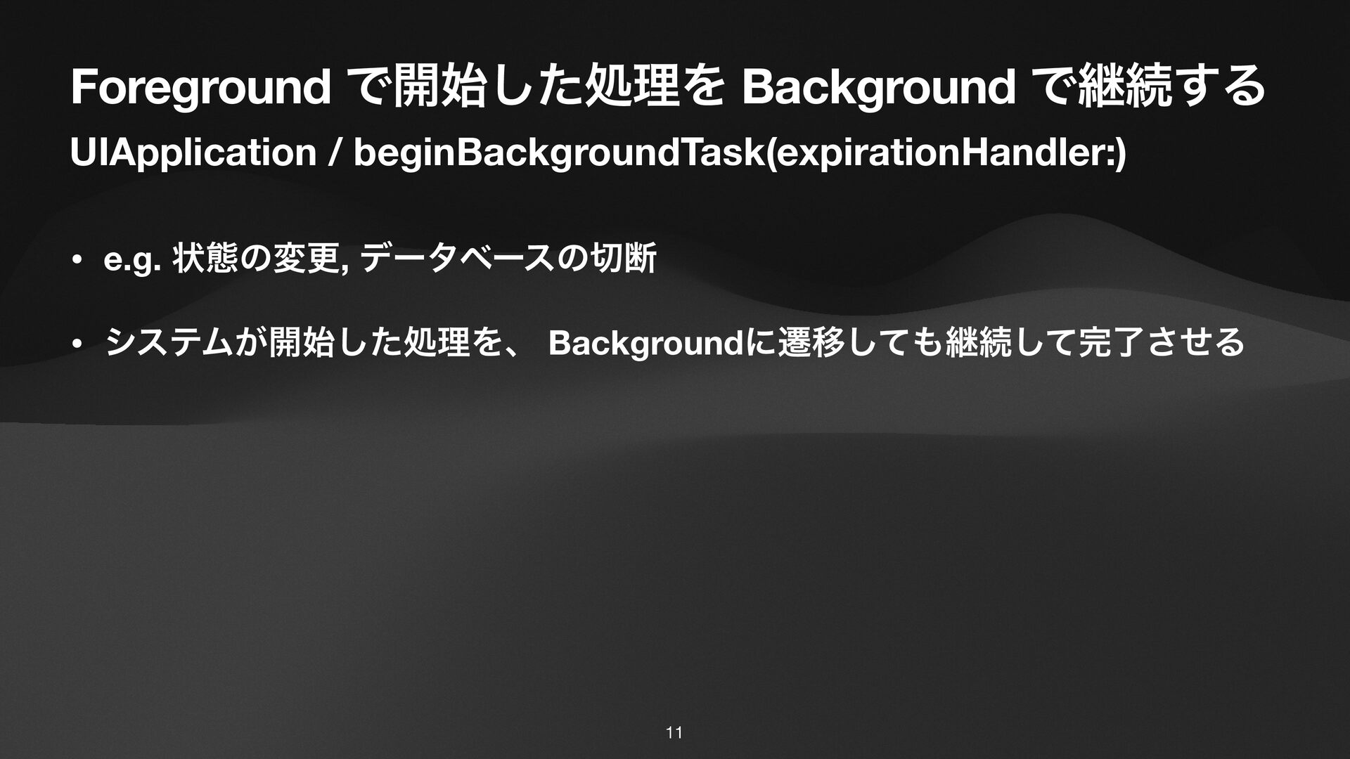 ʹ࣮ػΛબ 2. Run ͯ͠λεΫΛεέδϡʔϧ 3. Foreground Ͱ Pause program execution ϘλϯΛԡ͢ 4. Home Screen ʹΔͳͲͯ͠ Background ʹભҠͤ͞Δ 5. LLDBͰҎԼΛ࣮ߦʢൃՐ͍ͤͨ͞λεΫͷTask IDΛࢦఆ͢Δʣ