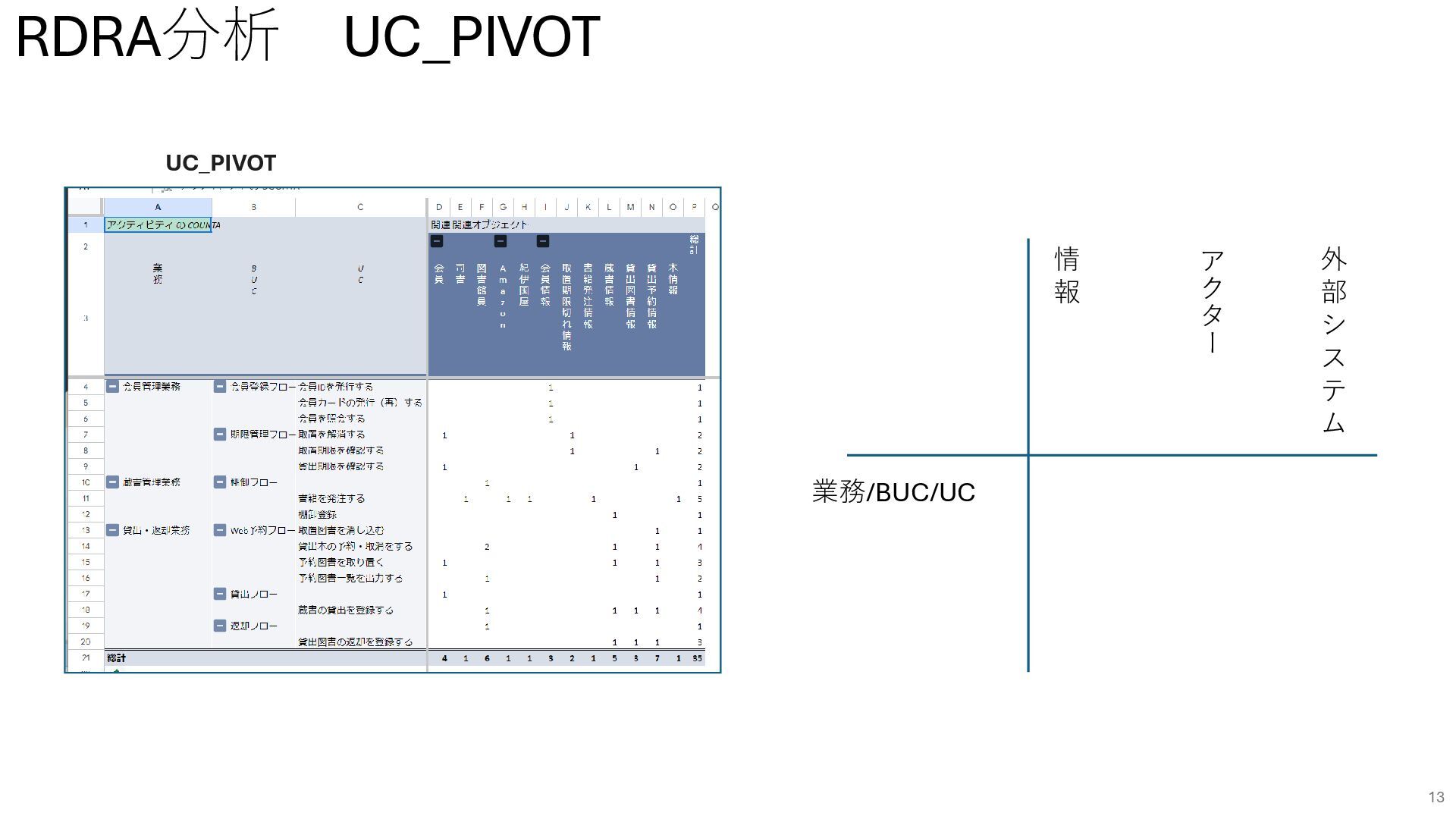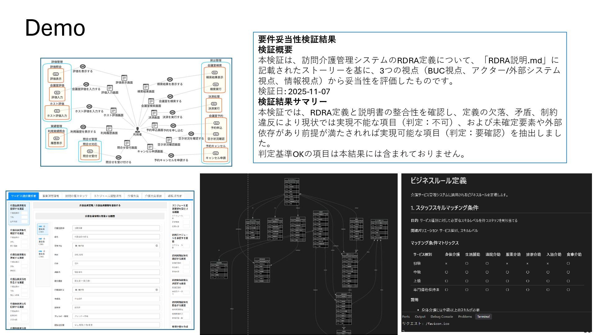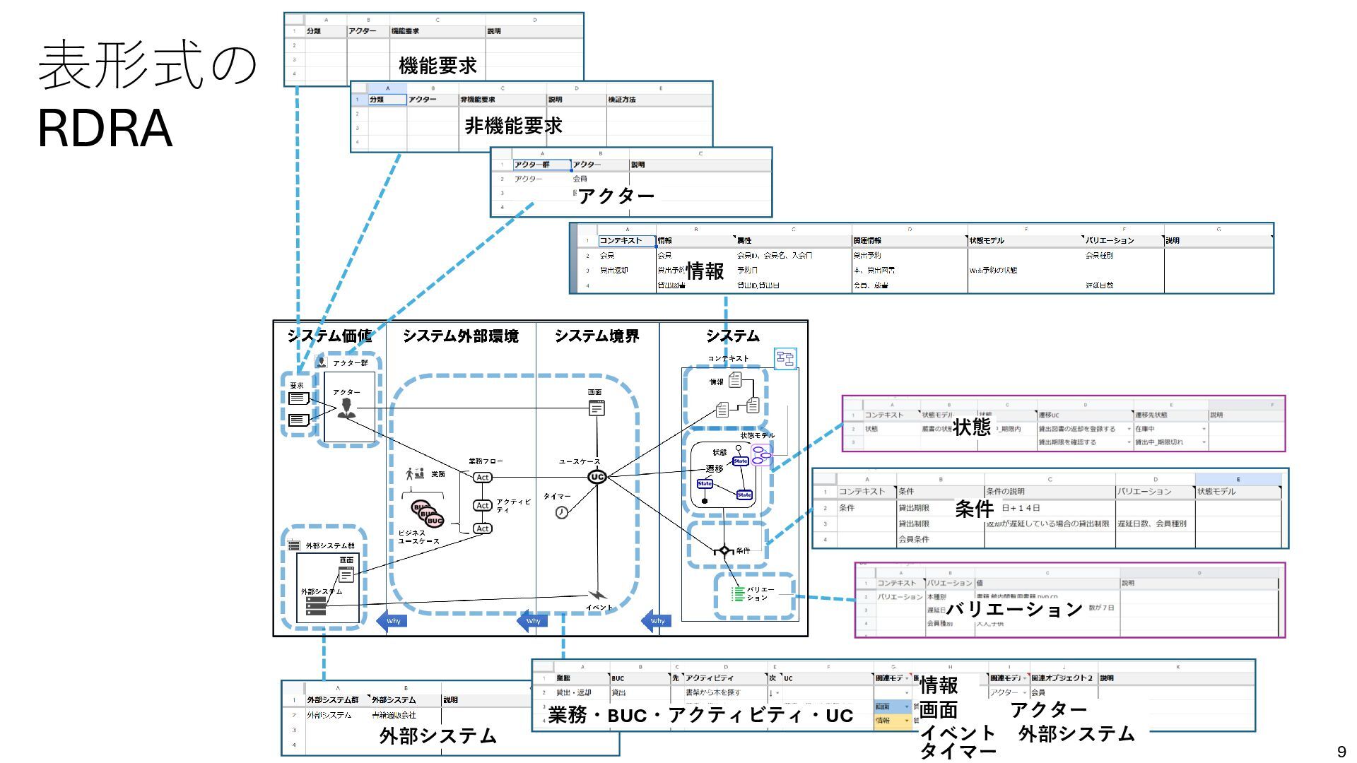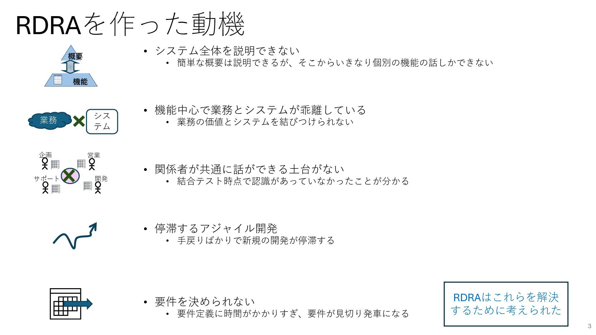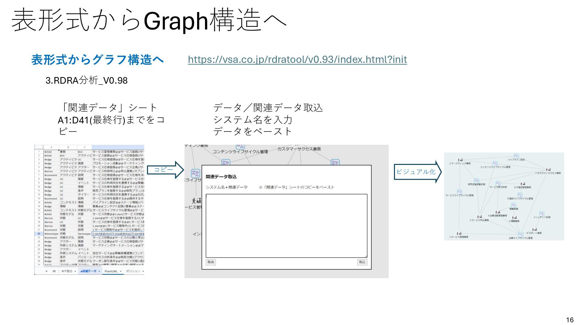 画面 情報 イベント 物事の関係性を語る 一人で考え一人で作成 一つ一つを完成させる 徐々に洗練化する 成果物ではなく 要件を組立てる 構造が要件を組 み立てる 文書で意味を伝える 関係で意味を伝える みんなで考えその場で作成 What Why 文書では関わり が分かりづらい 粒度の細か い定義 粒度の細 かい定義 粒度の 粗い 定義 Xx x Xx x Xx x Xx x Xx x Xx x 詳細化を目指す 次工程で扱い やすくする 要件を決める仕組み がない 要件を決める仕組 みがある 依存 レイヤー 依存関係が要件 を決める 粒度を揃え る