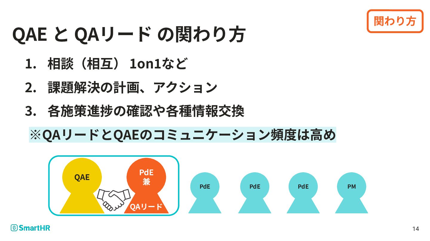 QAリードの役割 13 QAE PdE PM PdE PdE PdE 兼 QAリード