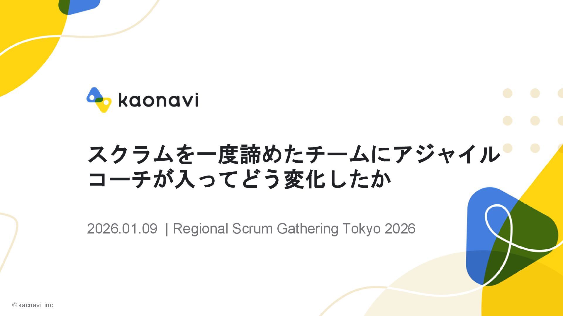 2026年1月7日-9日開催「Regional Scrum Gathering® Tokyo 2026」で登壇した際の発表資料です。https://confengine.com/conferences/regional-scrum-gathering-tokyo-2026/proposal/49066
