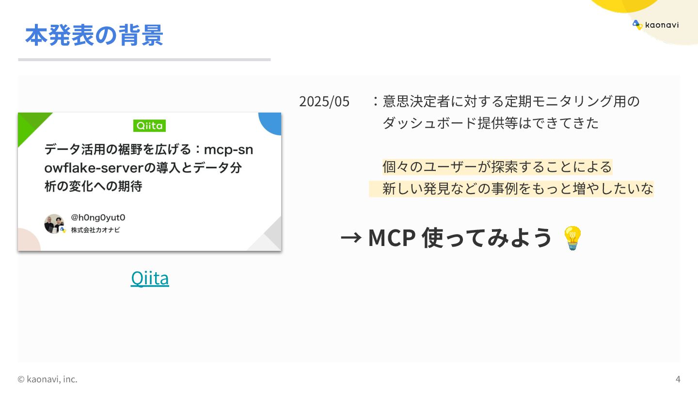 2025年10月30日に開催された「kaonavi Tech Talk #21 〜 カオナビの業務におけるAI活用 〜」での登壇資料です 。 https://kaonavi.connpass.com/event/372337/