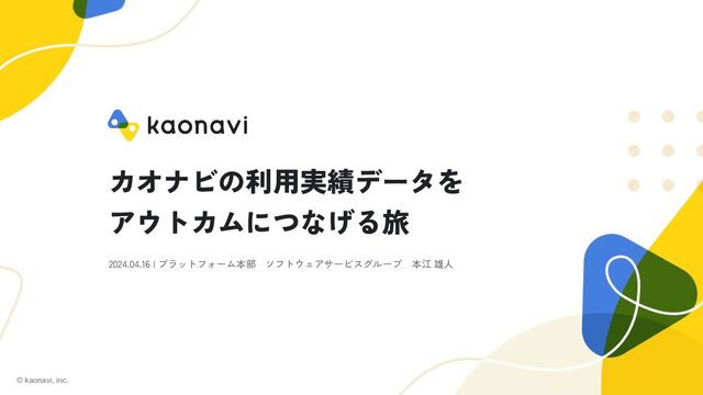 カオナビの利用実績をアウトカムへつなげる旅と題した、データマネジメントとデータの活用事例の紹介です。
