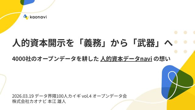 2026年3月19日に開催された「データ界隈100人カイギ vol.4 オープンデータ会」での登壇資料です。