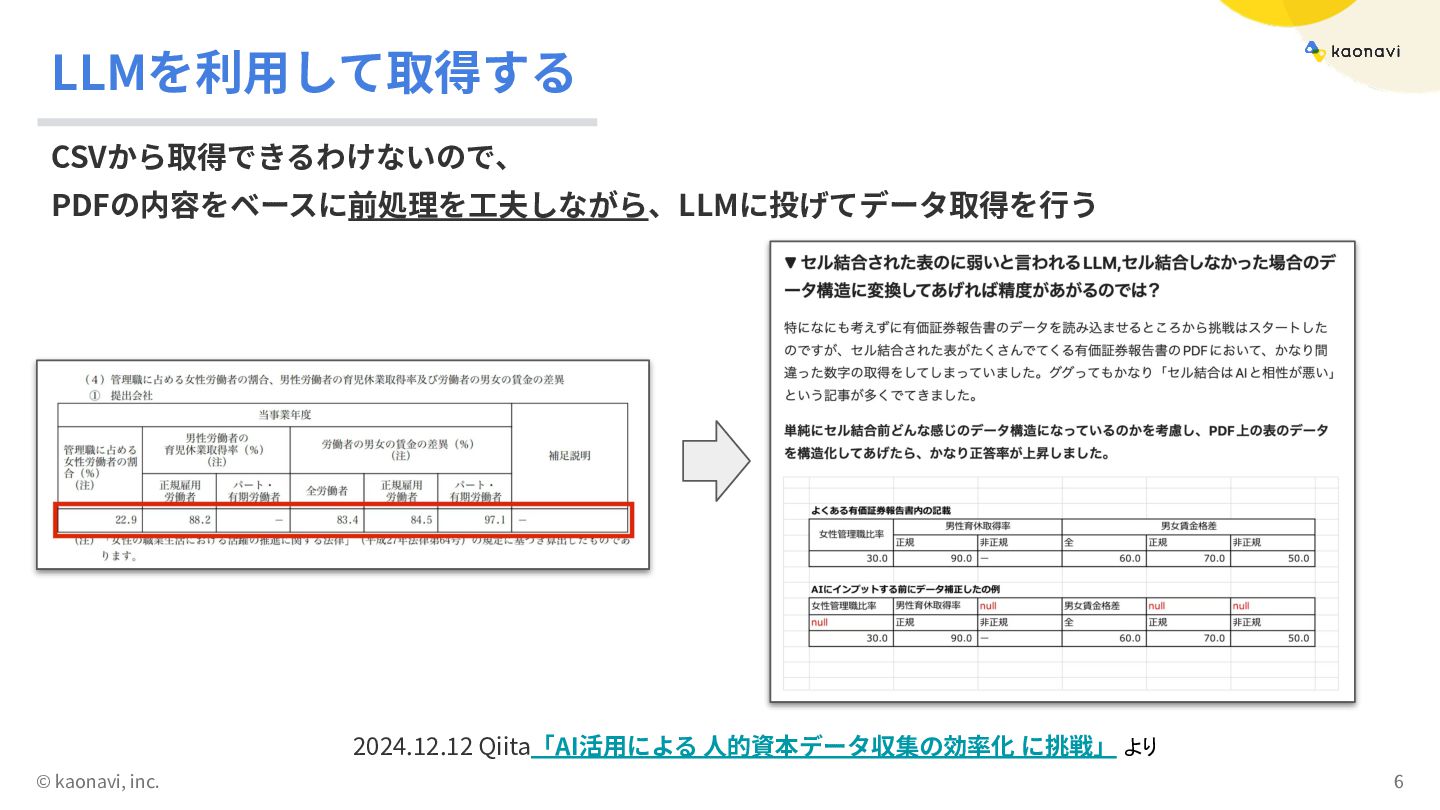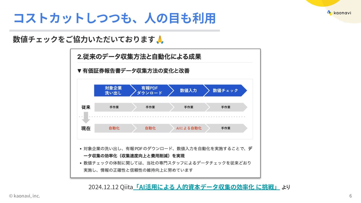 本資料では、EDINETから収集した膨大なデータをLLMを活用して構造化し、誰でも無料で競合比較ができるデータベース「人的資本データnavi」の開発背景とその想いについて紹介しています 。開示データを単なる数字の羅列に終わらせず、より良い組織作りをしている全ての方の「武器」となるデータとなれたら嬉しいです。