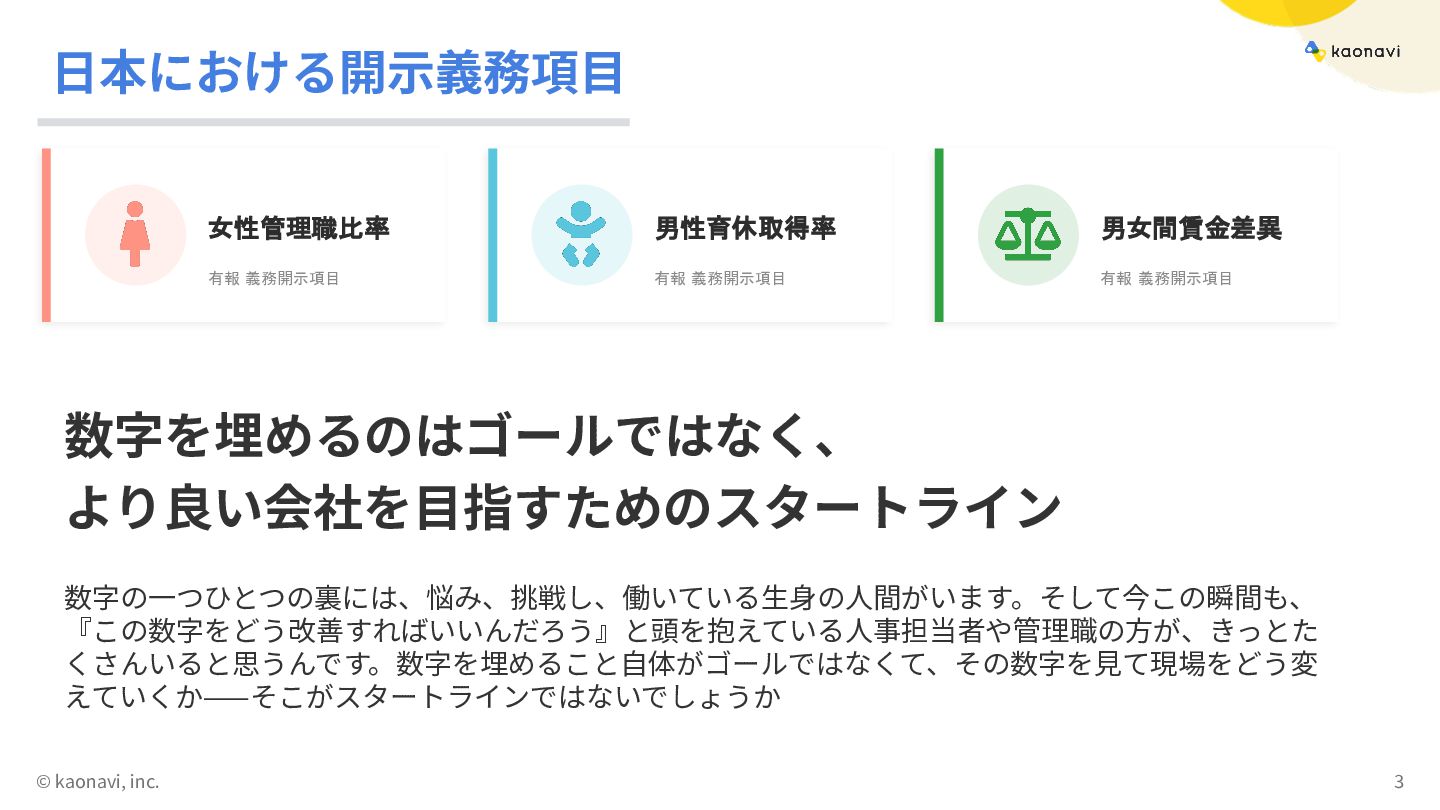人的資本開示が義務化され、約4,000社の上場企業が有価証券報告書でのデータ開示対象となりました 。しかし、自社の数値(女性管理職比率など)が業界内でどのような立ち位置にあるのか、比較対象がないために改善のアクセルを踏めないという課題があります 。