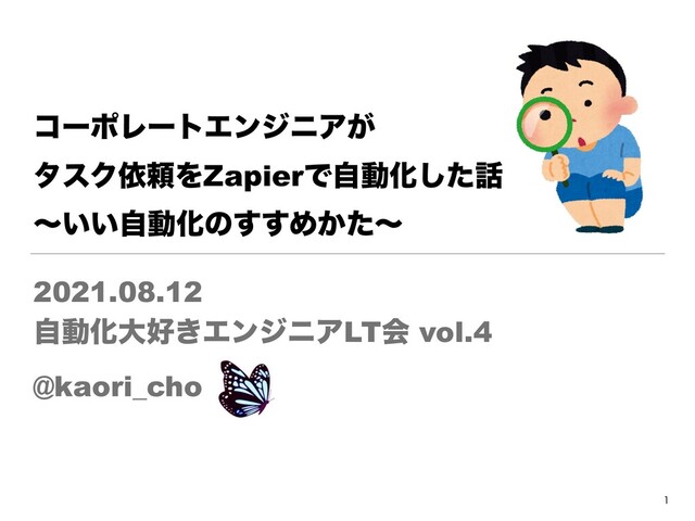 ίʔϙϨʔτΤϯδχΞ͕ λεΫґཔΛZapierͰࣗಈԽͨ͠ ʙ͍͍ࣗಈԽͷ͢͢Ί͔ͨʙ 2021.08.12 ࣗಈԽେ͖ΤϯδχΞLTձ vol.4 @kaori_cho