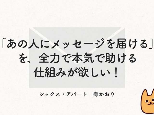 「あの人にメッセージを届ける」 を、全力で本気で助ける 仕組みが欲しい!