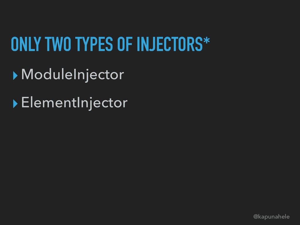 ONLY TWO TYPES OF INJECTORS* ▸ModuleInjector ▸ElementInjector @kapunahele