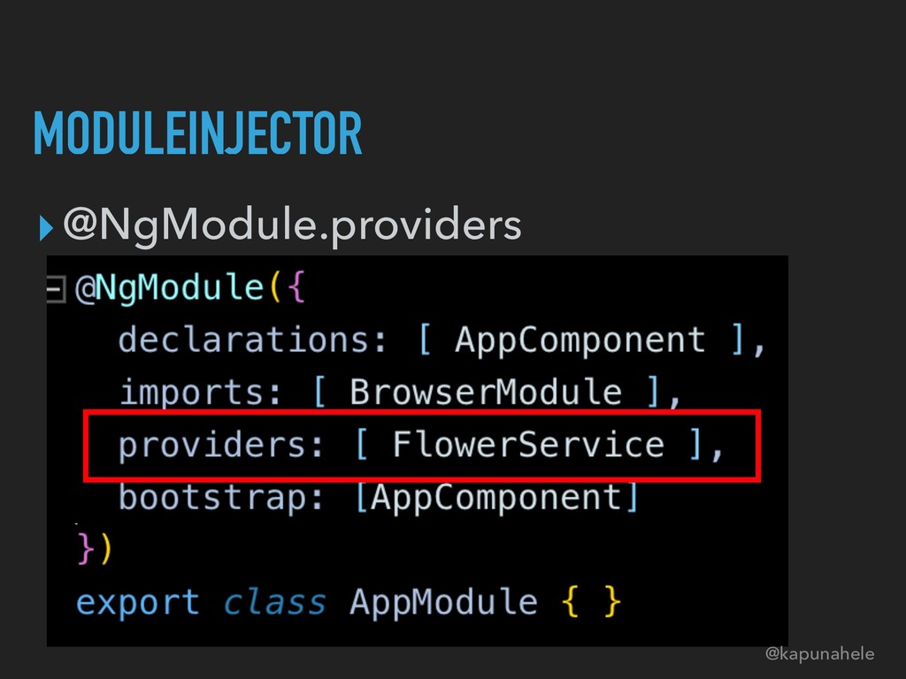MODULEINJECTOR ▸@NgModule.providers ▸@Injectable.providedIn @kapunahele