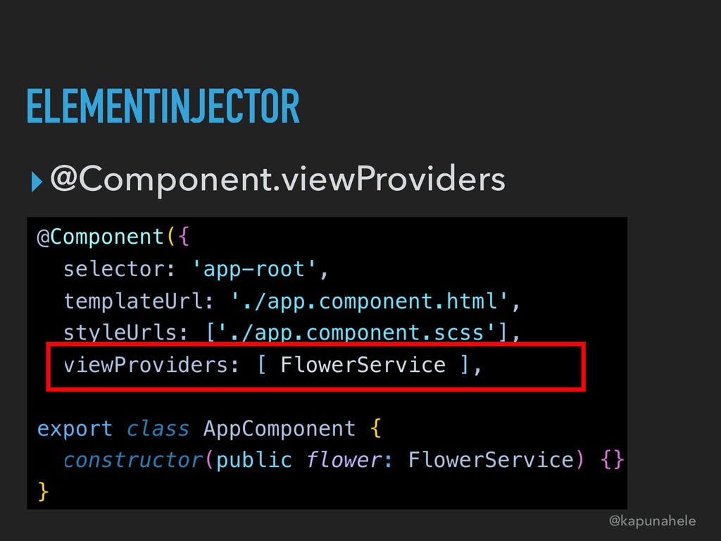 ELEMENTINJECTOR ▸@Component.providers ▸@Component.viewProviders @kapunahele