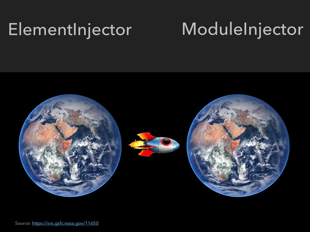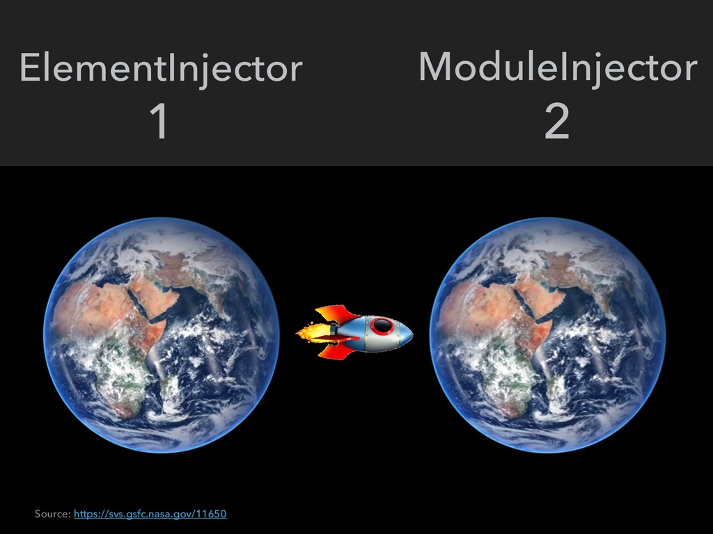 @kapunahele 1. Two injector trees 2. ElementInjector first, ModuleInjector second