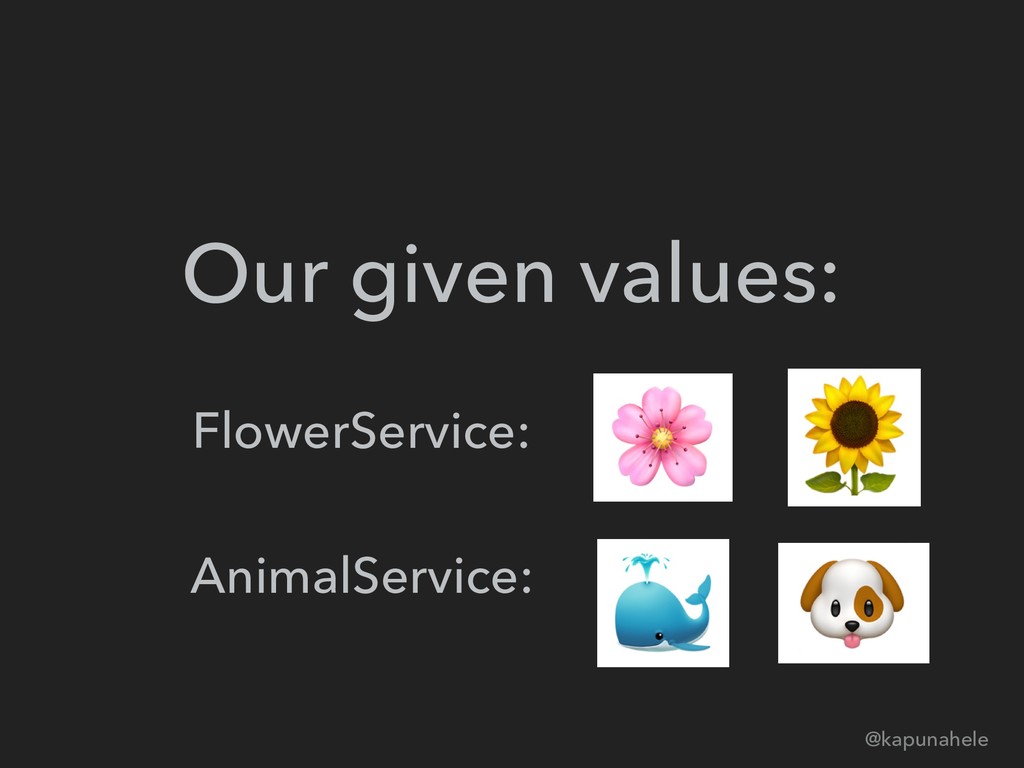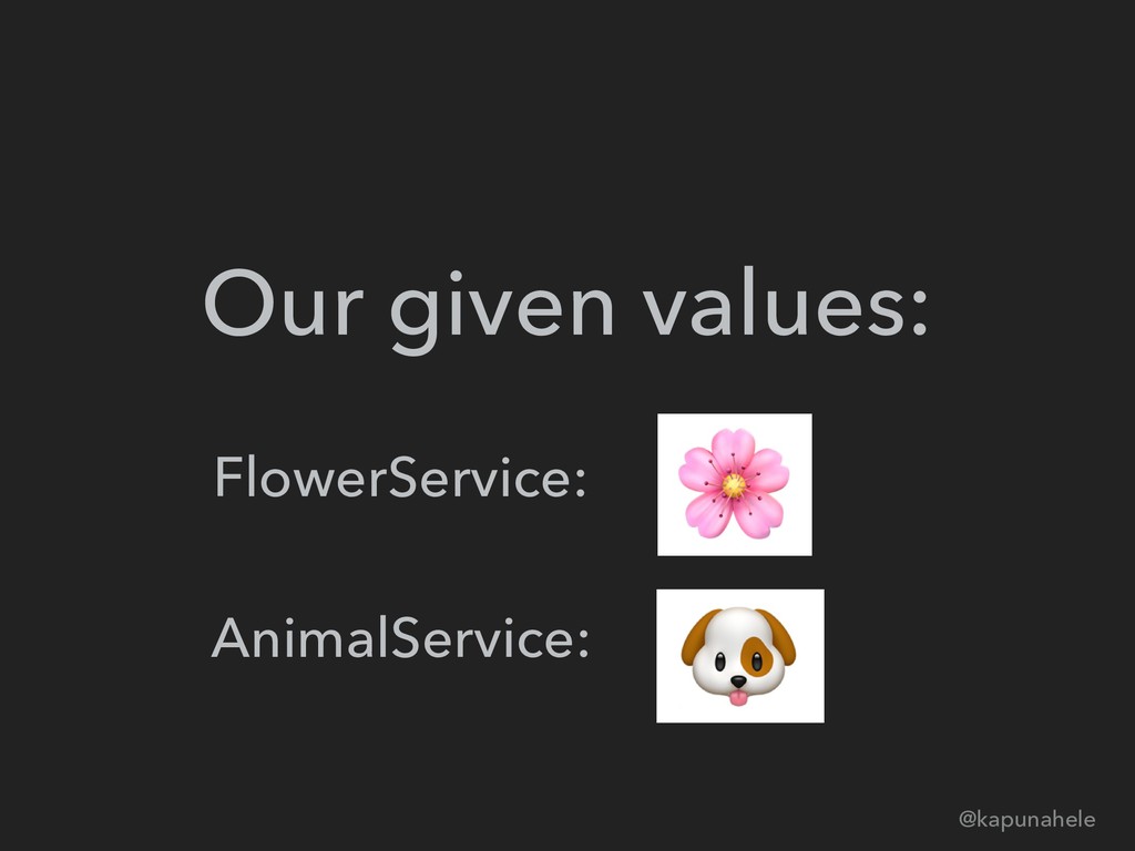 Our given values: @kapunahele FlowerService: AnimalService: