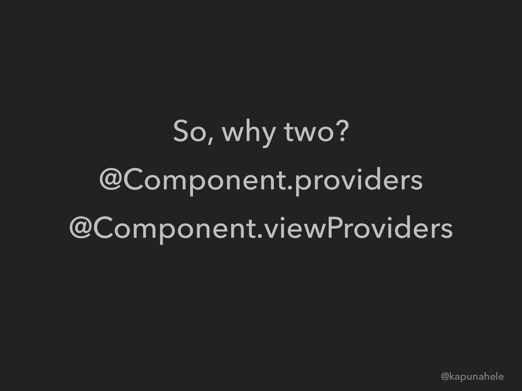 So, why two? @Component.providers @Component.viewProviders @kapunahele