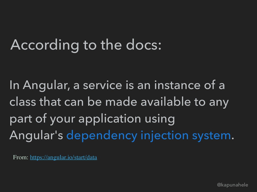 According to the docs: @kapunahele In Angular, a service is